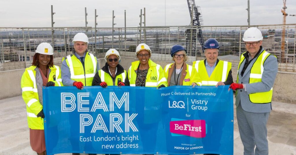 Vistry Group and L&Q have completed the highest point of the third phase of the Beam Park project, located on the former Ford manufacturing site bordering Dagenham and Rainham.