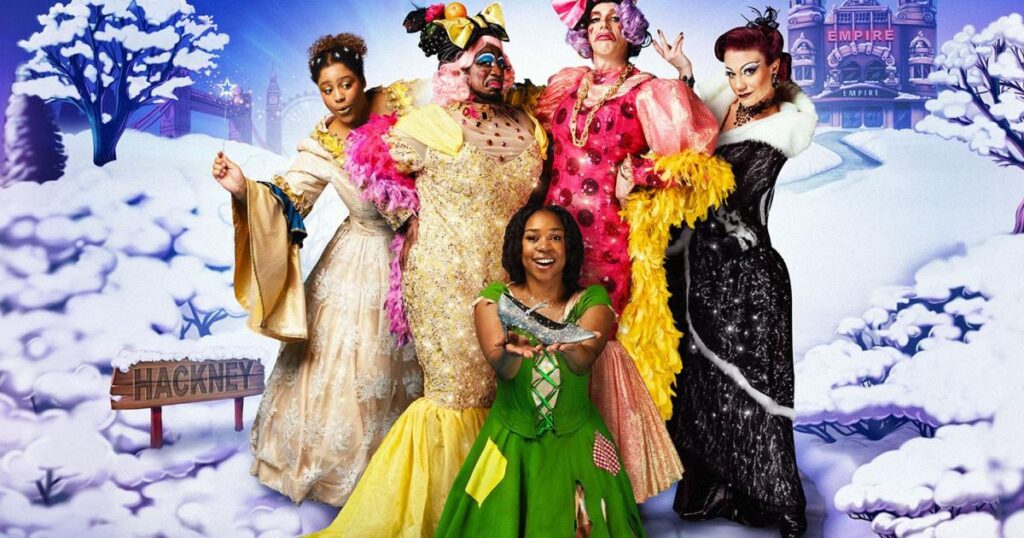 The cast, along with Siobhan James’s Cinderella, includes Jade Johnson as Fairy Godmother, Nicholas McLean as Buttons, Alexandra Waite-Roberts as Wicked Stepmother Oblivia, Kat B returning for his 20th Hackney panto as Ugly Sister Flatula, George Heyworth as Ugly Sister Nausea, Chrissie Bhima as Dandini and Luke Latchman as Prince Charming.