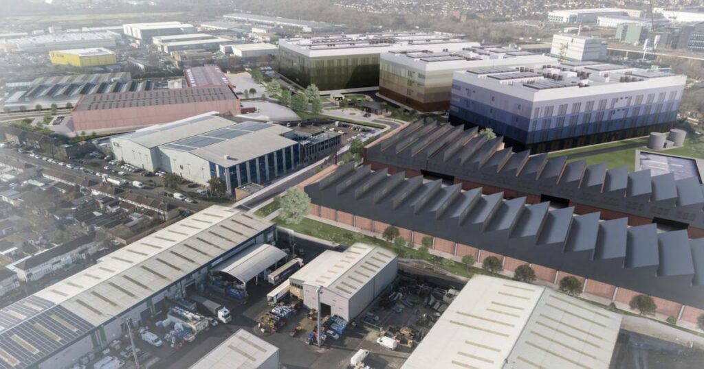 Plans to entirely redevelop the International Trading Estate in Southall will provide four “hyperscale” data centre units, a central pavilion hub and two substations. The scheme would also create public realm improvements connecting the site to Grand Union Canal.