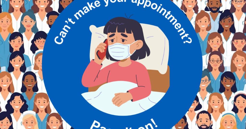 “If you can call us more than 24 hours in advance, we can ‘pass it on’ and offer your appointment to one of your neighbours.”