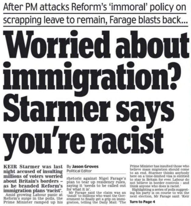 “Worried about immigration? Starmer says you’re racist.”
